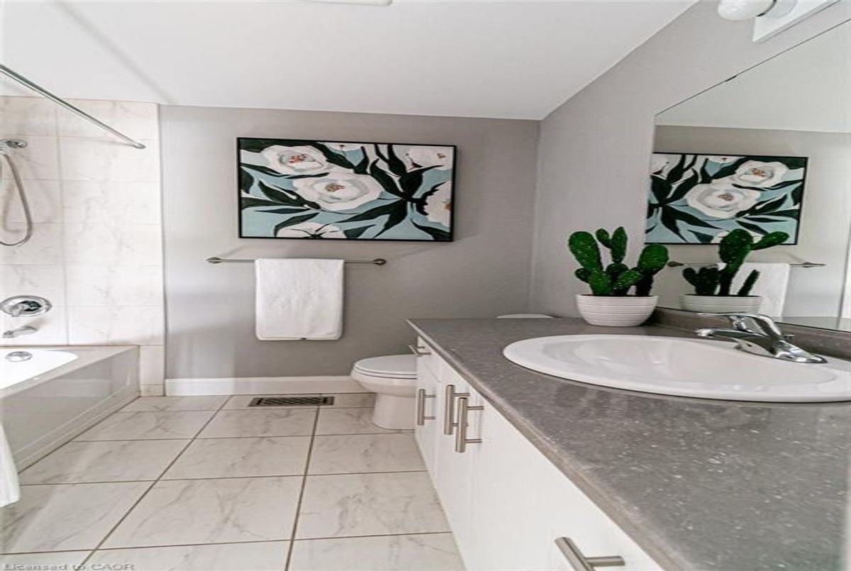 1480 sq. ft. of fabulous move in ready living space! This ground level west Hamilton condo is a real treat. 2 bed 2 bath with stylish finishes, neutral decor and super layout! The main floor enjoys high ceiling, open concept living, dining and kitchen with quartz counters, breakfast bar and walk out to raised deck/backyard space, a spacious bedroom and full bath. The lower level enjoys large bedroom with lots of natural light, walk in closet with built ins, a stylish full bath with walk in shower, laundry room and utility/storage room. This 8 years new complex is situated close to West Harbour GO, Bayfront Park, west end and downtown shopping and amenities. A terrific offering.