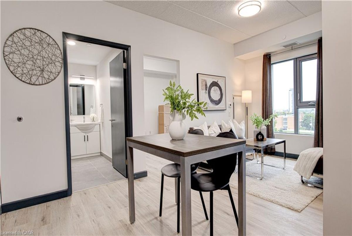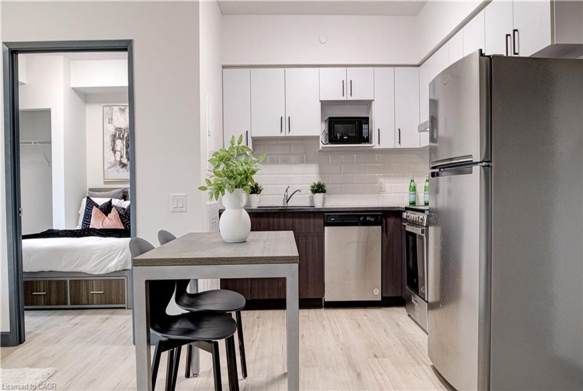 Located in the heart of Waterloo's university district, just minutes from Wilfrid Laurier University and the University of Waterloo, 298 Hemlock Street offers an exceptional opportunity to live in one of the city's most vibrant and well-connected communities. With convenient access to public transit, parks, shopping, and everyday amenities, everything you need is just steps away.This fully furnished one-bedroom plus dining suite offers 772 sq. ft. of thoughtfully designed living space and is available for $2,210 per month. The layout provides a spacious primary bedroom along with a dedicated dining area, creating a functional and comfortable flow that works well for professionals, graduate students, or small households seeking extra usable space. The modern kitchen features granite countertops, full wood cabinetry, and energy-efficient LED lighting, seamlessly connecting to the open-concept living and dining area. Floor-to-ceiling windows allow natural light to pour in, enhancing the bright and welcoming atmosphere throughout the unit. With contemporary finishes, a practical layout, and an unbeatable location, this suite delivers comfort, convenience, and urban lifestyle in the heart of Waterloo. Contemporary, practical, and perfectly located — this is elevated urban living in Waterloo’s most in-demand neighbourhood.