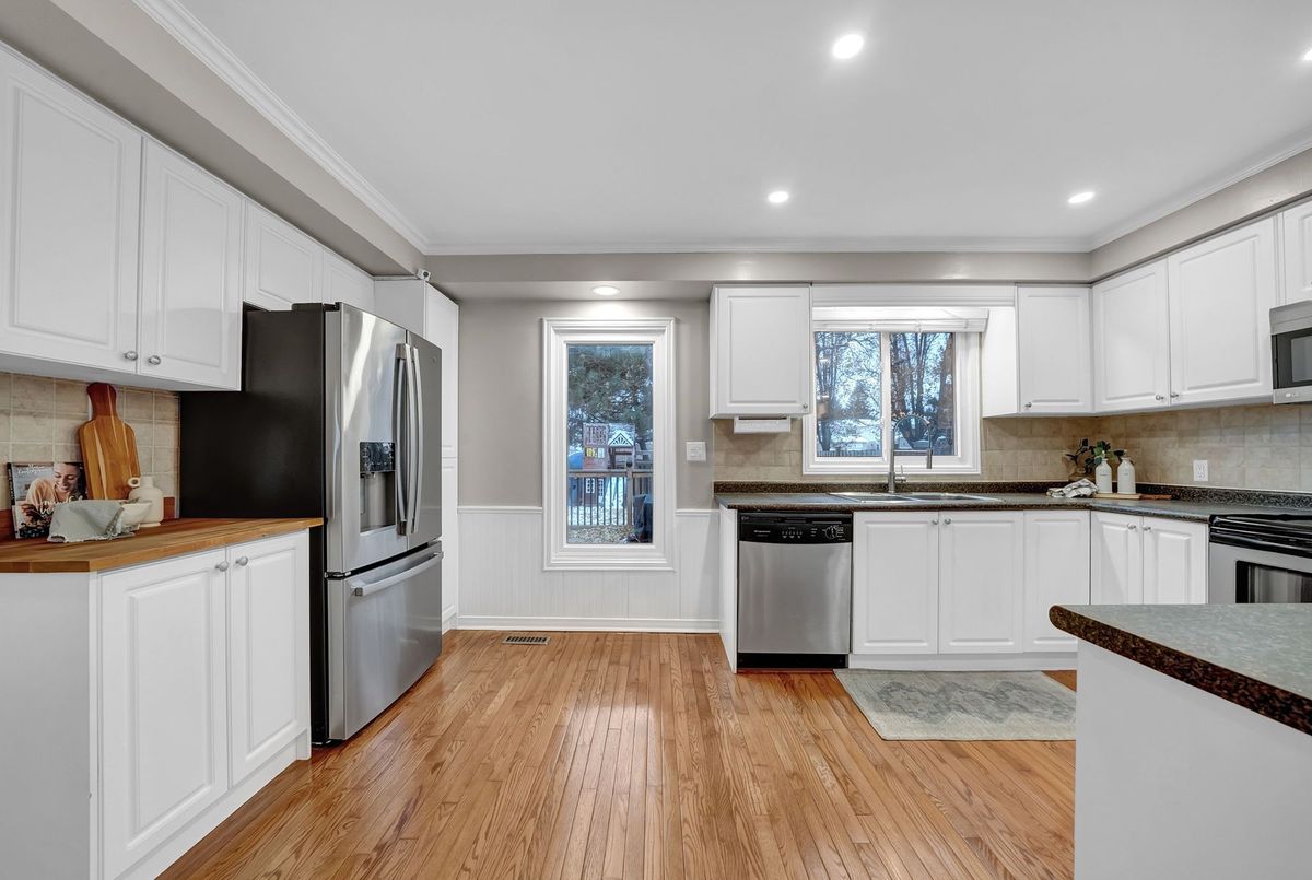 Welcome To This Well-Kept, Move-In-Ready Home That Offers Comfort, Charm, And Plenty Of Room For Family Living. The Bright Eat-In Kitchen Features Stainless Steel Appliances And A Welcoming Layout That's Ideal For Everyday Meals. The Spacious Family Room Showcases A Wood-Burning Fireplace, Setting The Scene For Warm, Relaxing Nights At Home.The Living Area Provides Added Versatility, Giving Families Of All Sizes The Space To Gather, Entertain, Or Simply Unwind. Upstairs, The Impressive Primary Suite Feels Like A Retreat With Its Updated 4-Piece Ensuite Complete With Heated Flooring And A Walk-In Closet. Two Additional Bedrooms And A 4-Piece Bath Complete The Second Level. The Lower Level Remains Unspoiled, Offering Excellent Storage. Outside, Enjoy A Generously Sized Backyard Oasis With A Newer Deck, Perfect For Outdoor Dining And Summer Fun. Situated Steps From A Beautiful Conservation Area And Close To Great Schools, Parks, And Everyday Amenities, This Property Blends Convenience With Nature At Your Doorstep While Tucked Away On A Quiet Street. Don't Miss Your Chance To Make This Home Yours!