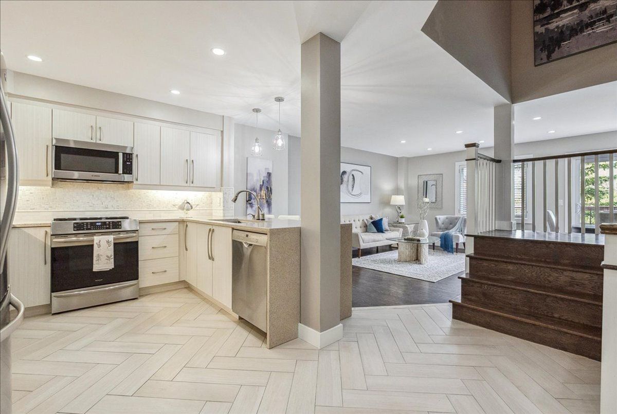 Welcome to this beautiful townhome located in the prestigious Joshua Creek community. This exquisite home offers 3 bedrooms, 4 bathrooms and backs onto a beautiful ravine setting that provides privacy, peace, and tranquility. The main floor features a spacious foyer with upgraded ceramic tiles, inside access to the garage, a convenient 2-piece bathroom, elegant hardwood flooring, open-concept modern kitchen with stainless steel appliances, quartz countertops, under-cabinet lighting, living and dining area perfect for entertaining and leads out to to a composite deck to enjoy a BBQ or relax and enjoy nature. The upper level boasts a large primary bedroom with two walk-in closets and a cozy gas fireplace, renovated bathroom with shower and double sinks. Two additional spacious bedrooms served by an updated 4-piece bathroom complete this level. The lower level has a generous recreation room with a gas fireplace, walkout to a private patio, large laundry room with ample storage and an additional 2-piece bathroom. Close to top-rated schools, walking trails, shopping, and easy access to QEW, 407, 403, and GO Transit. As part of a well-maintained condominium complex, your fees include shingles, window replacement, deck, garage door and exterior door replacements, fence maintenance, lawn care and snow removal. Several updates have been completed in recent years, ensuring move-in readiness. Dont miss this opportunity to own a beautiful home in a welcoming neighborhood. Schedule your viewing today and enjoy the perfect blend of comfort and convenience.